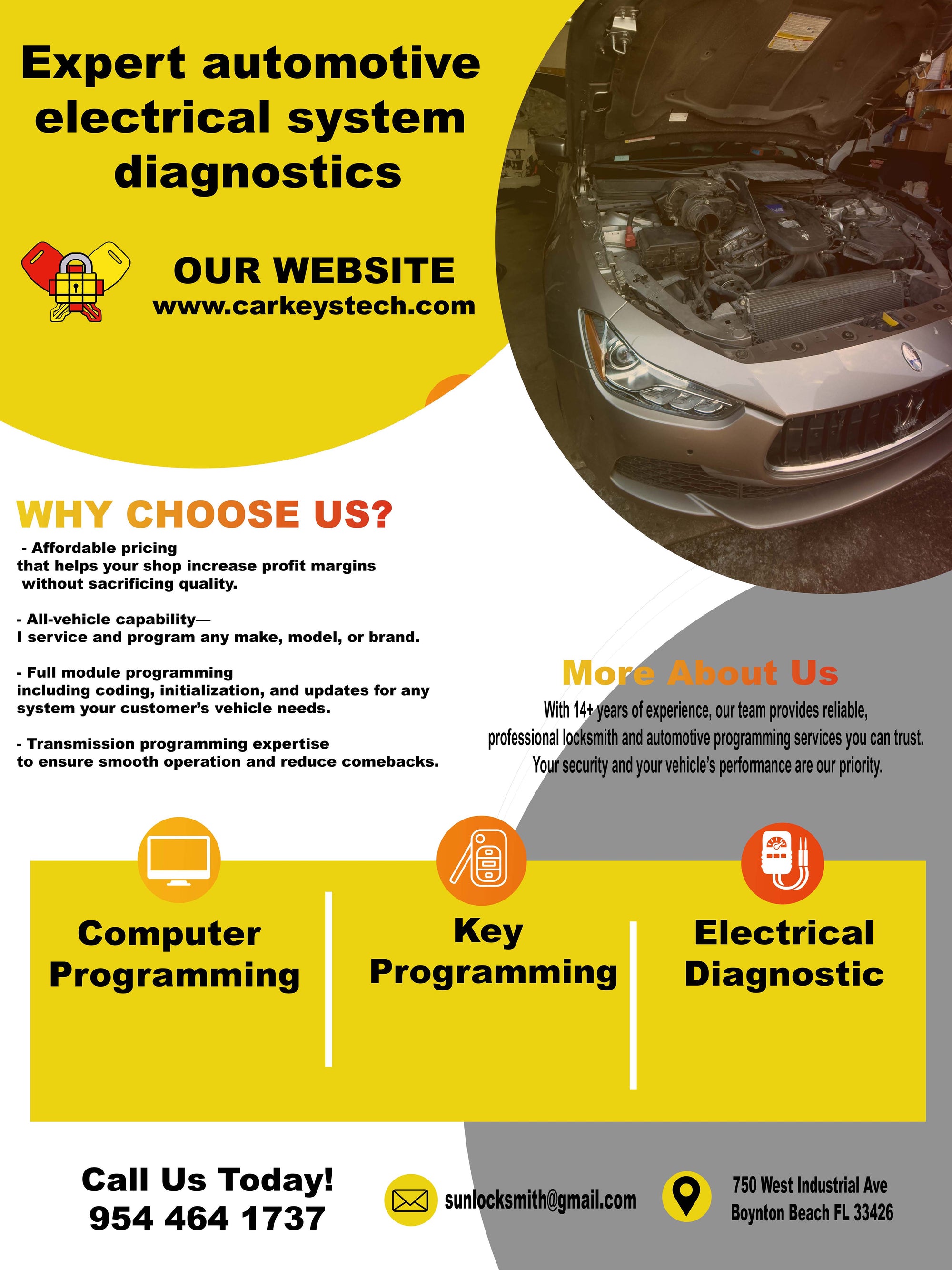 We provide expert automotive electrical diagnostics. If your car can’t be fixed elsewhere, or shops are charging too much for basic electrical work, bring it to us. Dealerships pushing unnecessary parts? We don't guess—we diagnose. We guarantee results, and we’ve never had a car we couldn’t fix. From vehicle networks to full electrical systems, we service all makes and models, including European, luxury, Asian vehicles, and more...